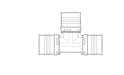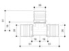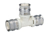 Tee made of PPSU for drinking water and heating system installations featuring white fixation rings with integrated inspection holes. fixed stainless steel pressing sleeves and leak function. Pressable with pressing contours F and TH.