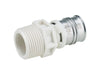Male thread adapter according to DIN EN 10226-1 made of PPSU for drinking water and heating system installations. Featuring a white fixation ring with integrated inspection holes, fixed stainless steel pressing sleeve and leak function. Pressable with pressing contours F and TH.