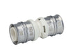 Coupling made of PPSU for drinking water and heating system installations featuring white fixation rings with integrated inspection holes. fixed stainless steel pressing sleeves and leak function. Pressable with pressing contours F and TH.