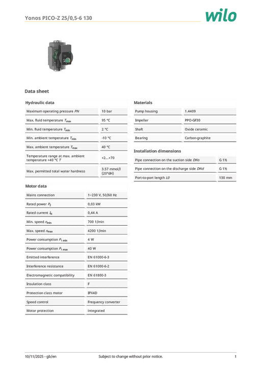 View full detailsWilo Yonos PICO 25/1 to 8 (130mm)